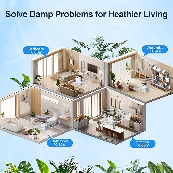 - Sleep Mode: The dehumidifier for home has 2 modes of operation. The high speed mode effectively reduces humidity, thus removing moisture quickly and efficiently. It also features a low sleep mode for quiet operation during sleep (< 30 dB). Meet your every need, and the bass sleep mode allows you to sleep and study without any interruptions.