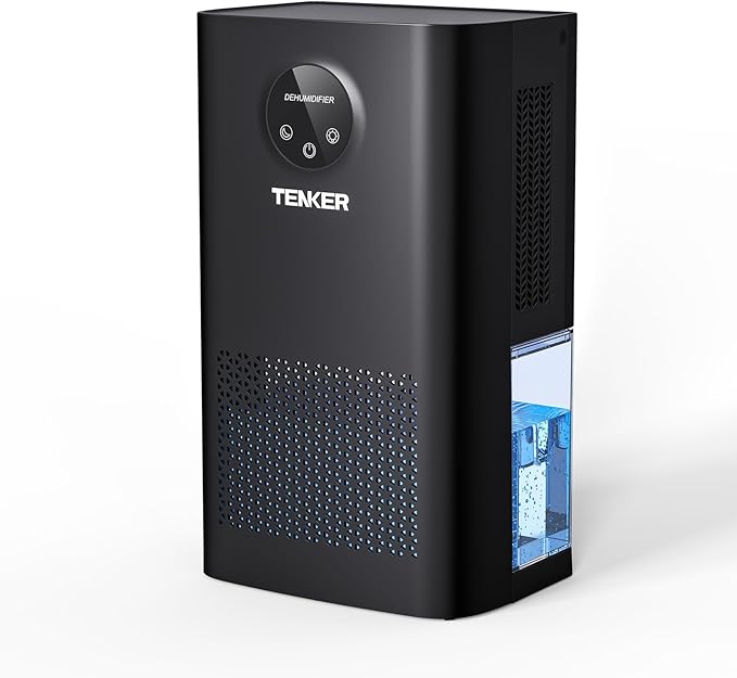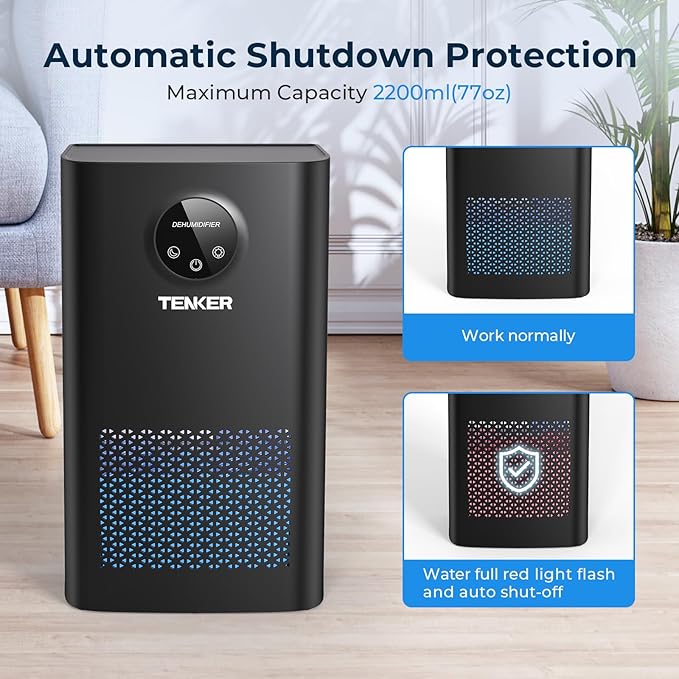TENKER Dehumidifier for Home, 77 OZ Water Tank (800 sq.ft) Dehumidifiers, Quiet Dehumidifier with Sleep Mode, Auto Shut Off, 7-Color LED Light for Closet Bedroom Bathroom Basement RV, White (Black)