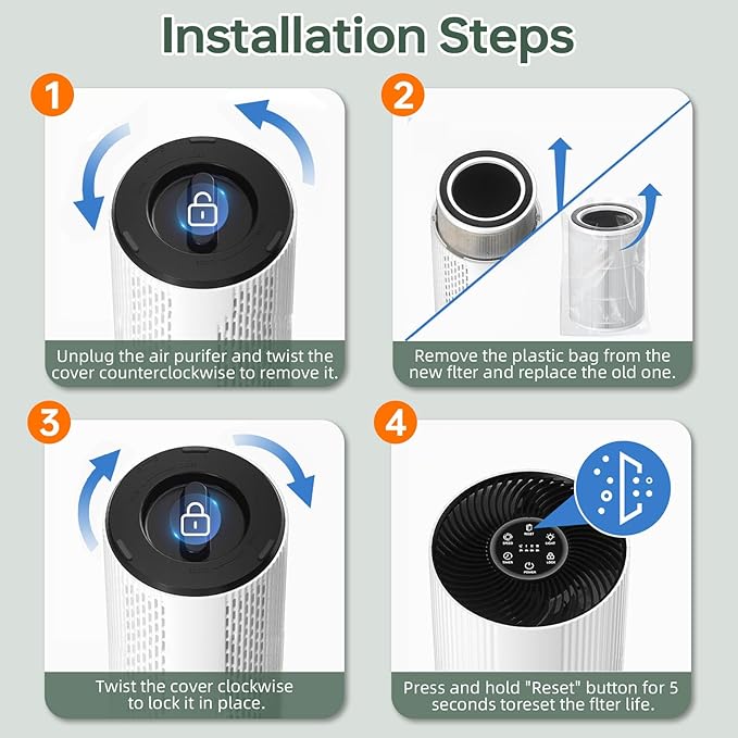 - [Easy to Clean and Replace] The Replacement Part easy to replace without any tool, each air purifier replacement filter provides up to 6 months of efficient air purification, reducing the frequency of replacements and maintenance