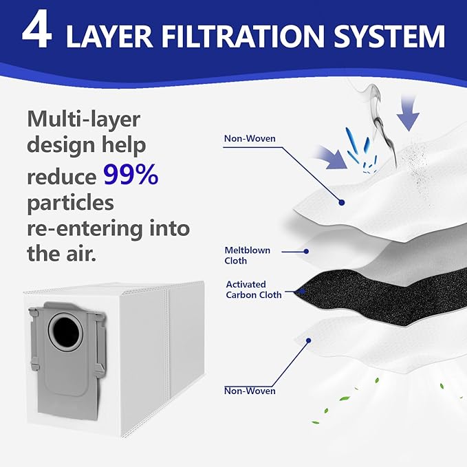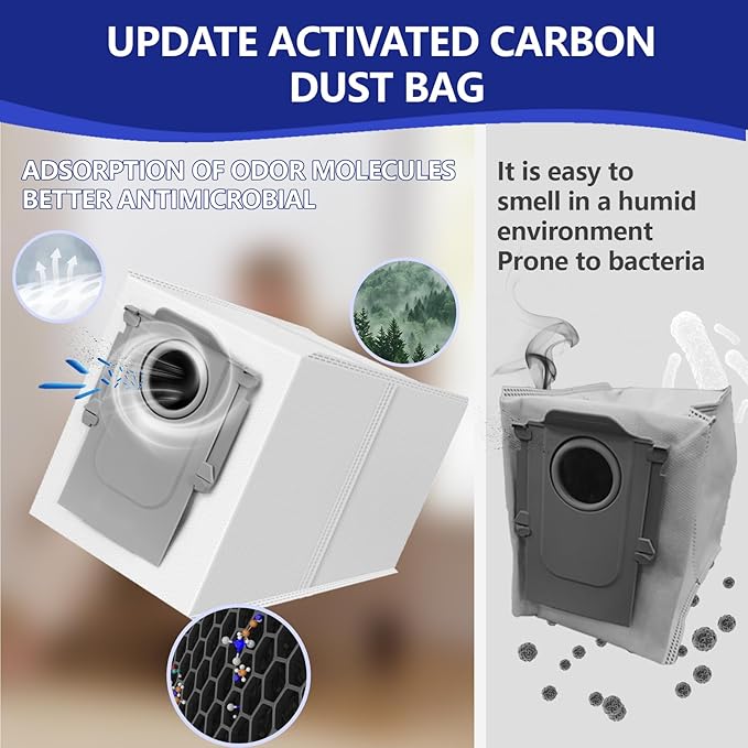 - 【Activated Carbon】Dust bags now feature an upgraded Activated Carbon layer that effectively neutralizes garbage odors and helps prevent or-ganic buildup from pet hair accumulation. This enhanced design ensures a cleaner, fresher home environment for your family.