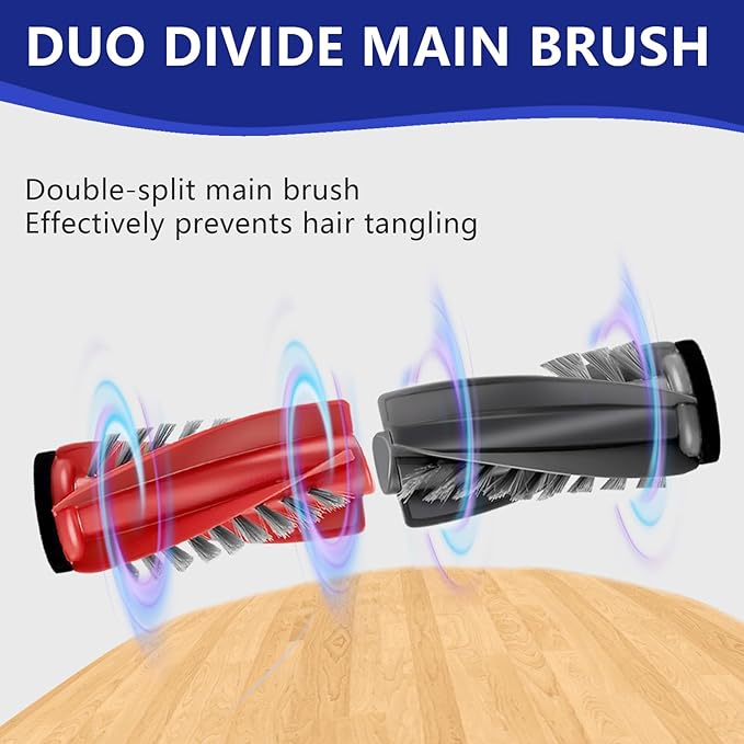 - 【Zero-Tangling Main Brush】The dual brush for Saros 10R features two parallel short bristle rollers with spiral blades that guide hairs towards the central dustbin inlet. The design prevents tangles and clogging, for effortless cleaning.
