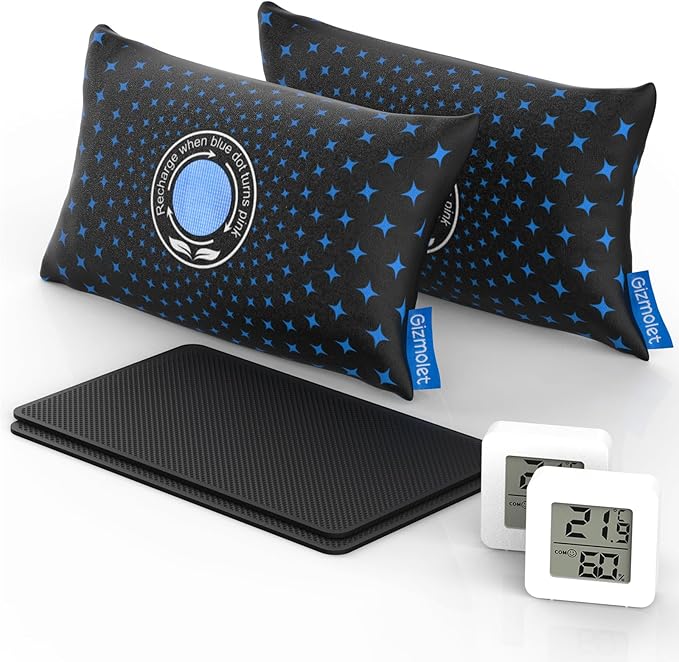 - β ππππ-πππππ : Designed for gun safes, cars, and other enclosed spaces, they absorb humidity without leaking. The included anti-slip mat keeps each safe dehumidifier securely in place, preventing it from sliding during driving.