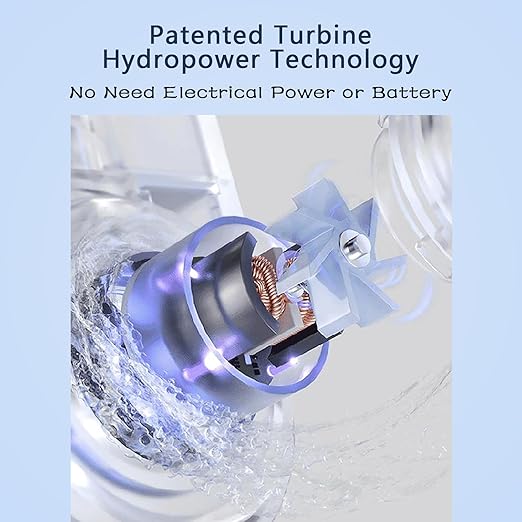 - 🌺【Patented Turbine Hydropower Technology】: Our faucet water filter features patented turbine hydropower technology, eliminating the need for electrical power or battery charging. This innovative system generates energy from water flow, ensuring continuous and efficient operation without external power sources. The UV light is driven by this hydroelectric power system. When switch to filtering mode, the blue light is on.