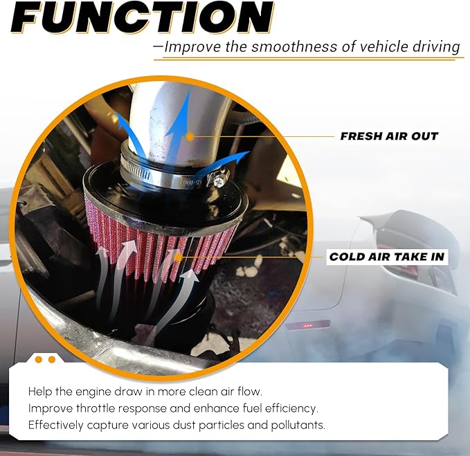 - FIT: For Universal Fitment Like Vehicles/Motorcycles/Boats/Cars;For Neck Size 76mm(3") Air Inlet System.
