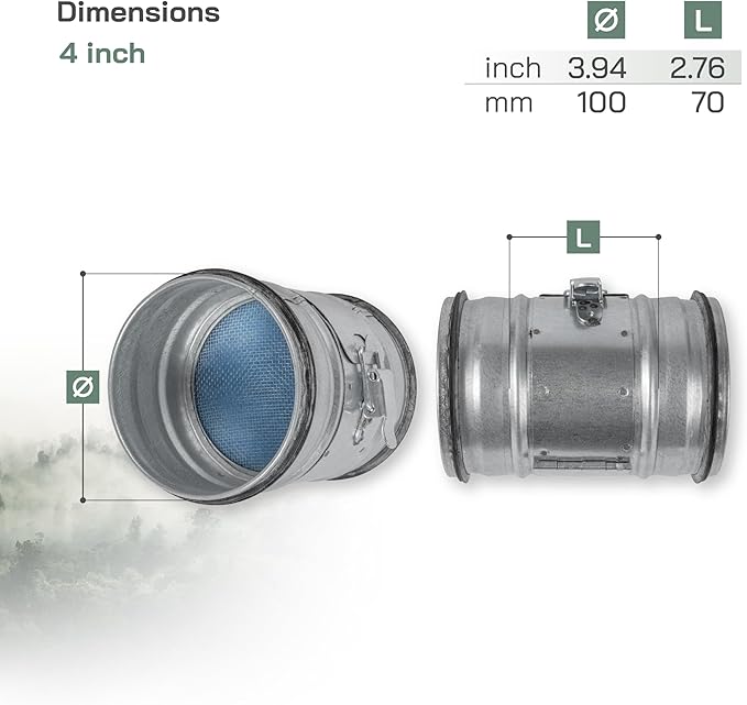 Vent Systems 4" Inch Inline Air Filter - Duct Filter - G4 Class Filtration Purifier System with Steel Mesh Screen - Air Vent Filters for Dust Collection/Air Purification - Rigid/Flexible Vent Hose