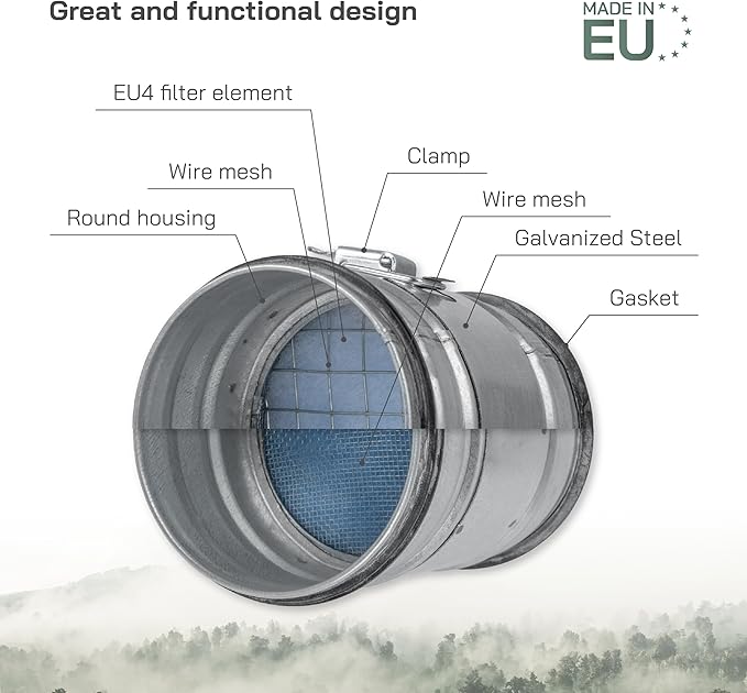 - Improved Ventilation: These filters are designed to trap particles such as dust, dirt, and lint. Pipe filters made to be installed between round ductwork.