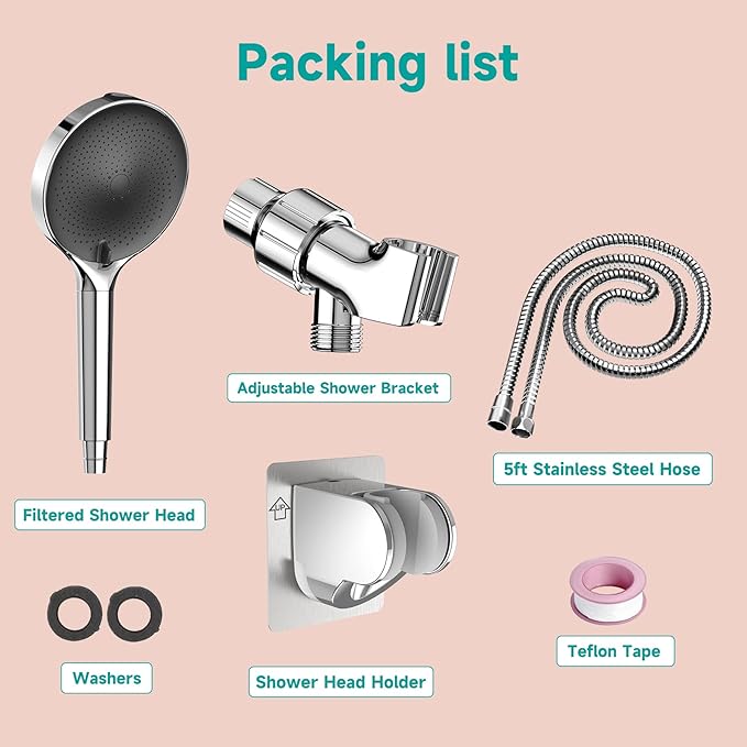 - 🚿【Purify the Water】 Our handheld shower filter head has a quadruple 15-stage powerful filtration layer. It effectively removes impurities and residual chlorine, heavy metals and other harmful substances from the water. Enjoy your shower and improves your skin and scalp health