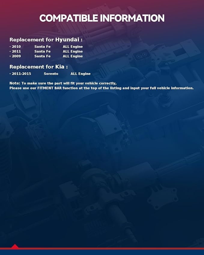 - Compatible Devices : Kia Sorento 2011-2015, Hyundai Santa Fe 2009-2011