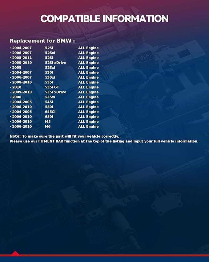 - Compatible Devices : BMW 525i 2004-2007, 525xi 2006-2007, 528i 2008-2011, 528i xDrive 2009-2010, 528xi 2008, 530i 2004-2007, 530xi 2006-2007, 535i 2008-2010, 535i GT 2010, 535i xDrive 2009-2010, 535xi 2008, 545i 2004-2005, 550i 2006-2010, 645Ci 2004-2005, 650i 2006-2010, M5 2006-2010, M6 2006-2010 BMW 525i 2004-2007, 525xi 2006-2007, 528i 2008-2011, 528i xDrive 2009-2010, 528xi 2008, 530i 2004-2007, 530xi 2006-2007, 535i 2008-2010, 535i GT 2010, 535i xDrive 20… See more