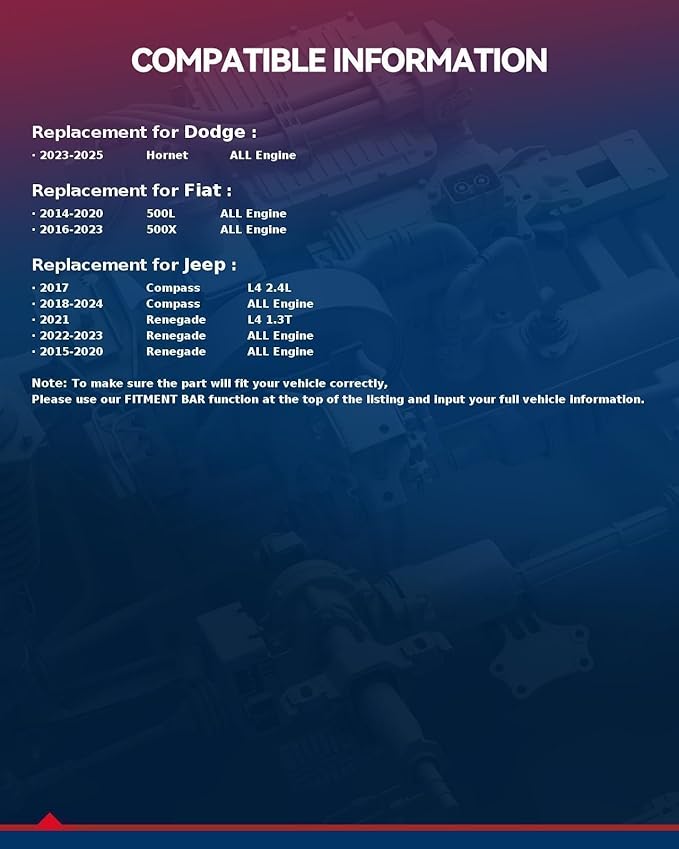 - Compatible Devices : Fiat 500L (2014-2020), Fiat 500X (2016-2023), Jeep Compass (2017-2024), Jeep Renegade (2015-2023), Alfa Romeo Tonale (2024), Dodge Hornet (2023-2024) Fiat 500L (2014-2020), Fiat 500X (2016-2023), Jeep Compass (2017-2024), Jeep Renegade (2015-2023), Alfa Romeo Tonale (2024), Dodge Hornet (2023-2024)