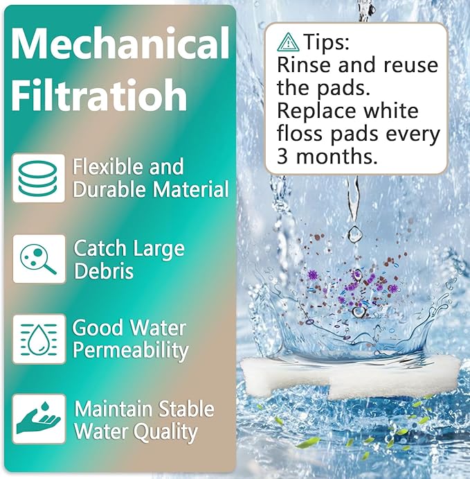 - Product Benefits : Removes impurities and odors, provides mechanical and biological filtration, and offers easy maintenance with washable and reusable pads. Removes impurities and odors, provides mechanical and biological filtration, and offers easy maintenance with washable and reusable pads.