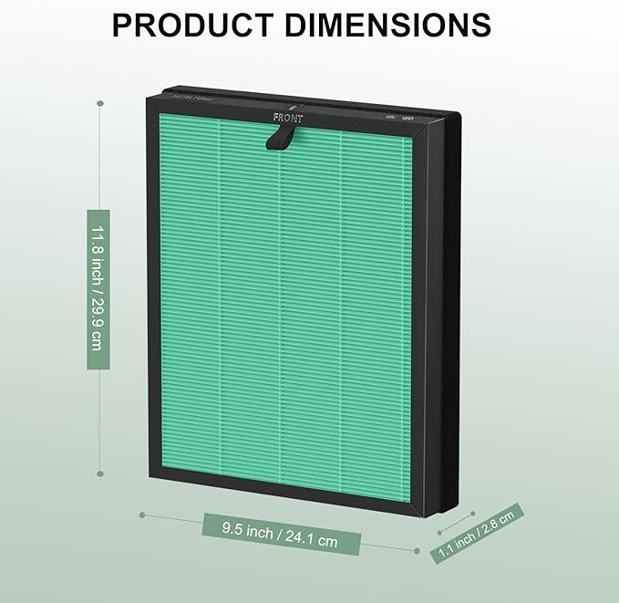 - Size: 9.4 (length) x 1.8 (width) x 11.8(height) inches. The MK-D05 air filter replacement has been tested to fit tightly with the MK-D05 air purifier. Please check your air cleaner machine's model number before purchasing