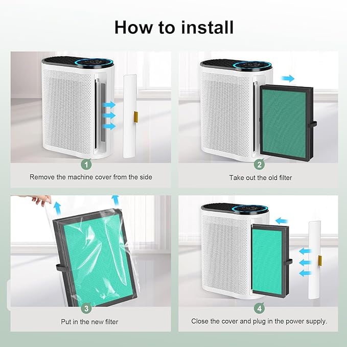 - SIMPLE REPLACEMENT PROCESS:To replace, open the filter cover, remove the old filter by pulling the side handle, and install the new one. Recommended replacement every 3–6 months depending on environmental conditions.