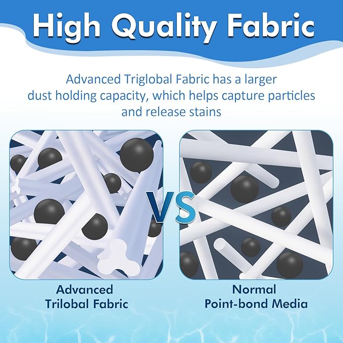 - ✔️ High Efficiency: 105 sq.ft. pleated design with Trilobal fabric captures 99% of debris (20+ microns).