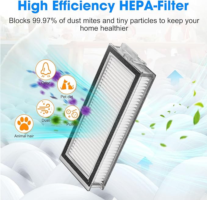 - Enhanced Cleaning Performance: Perfectly compatible with Roborock Q8 Max+ (Plus), Q5 Pro+ (Plus), Q5 Max+ (Plus), and Q5 DuoRoller+ (Plus). Equipped with dual main brushes for deep carpet cleaning and efficient hard floor sweeping, premium HEPA filter to capture fine dust and allergens, and ultra-absorbent microfiber mop pads for stubborn stains. Keep your home spotless and your air fresh with this all-in-one cleaning solution.