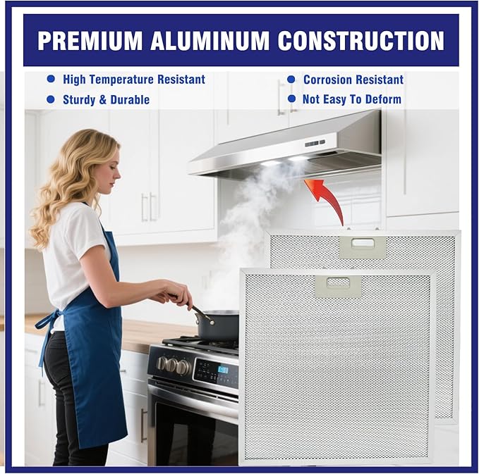 - THE FIRST LINE OF DEFENSE FOR RANGE HOOD - This aluminum mesh grease filter effectively captures cooking grease, preventing it from entering the exhaust system. Keep grease away from the fan blades, motor and ductwork, protecting your range hood's internal components and extending its lifespan. Size 13.75''x13.75''x0.35''