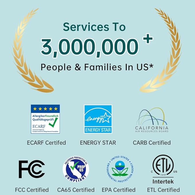 - 🌬 1. 3-Stage True HEPA Air Cleaners Captures 99.97% of dust and microscopic 0.3-micron particles with pre-installed composite filter (pre-filter+HEPA+activated carbon).Ideal for small spaces (up to 1800sq ft) like baby nurseries, home offices,and bedside tables– purifies air 5x faster than natural ventilation.