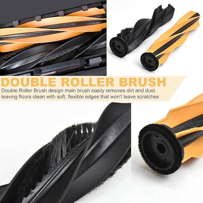 - [Set includes]: 4 Rubber Main Brush+ 6 Filters+ 6 Dust Bags+8 Mop Pads+6 Side Brushes