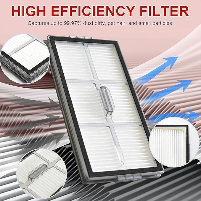 - [Product Set includes]: 4 Rubber Main Brush+ 6 Filters+ 6 Dust Bags+8 Mop Pads+6 Side Brushes