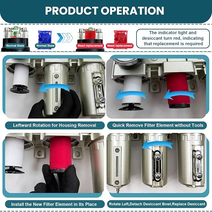 - High Pressure Tolerance – The air drying system features 1/2" NPT air ports and 1/4" NPT gauge port, capable of handling 0-240 PSI pressure range, ideal for industrial applications like paint spray and plasma cutters. Aluminum alloy body with corrosion-resistant metal bowls ensures endurance in harsh industrial environments