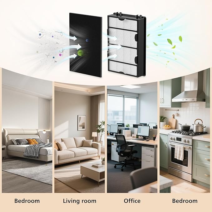 - 【Efficient Filtration】Bionaire air purifier filter replacement set includes 3 filters, which clean up 99.97% of airborne particles as small as 0.3 microns, including fine dust, pollen, smoke, odors, and pet dander. Experience fresh, purified air in your home or office all day long