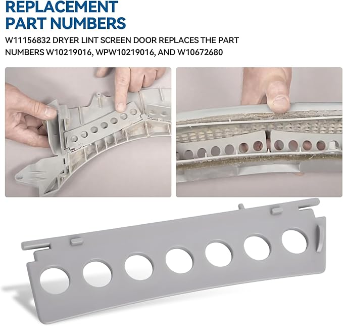 - REPLACEMENT PART NUMBERS: W11156832 Dryer Lint Screen Door replaces the part numbers W10219016, WPW10219016, and W10672680