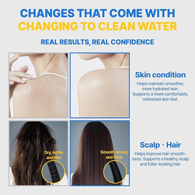 - [PRODUCT DESCRIPTION] Helps soothe dryness, sensitivity, and skin redness. Calms scalp irritation and supports healthy roots. Helps reduce chlorine, and heavy metals. Transforms your daily shower into a skin-loving ritual. This isn’t just a shower filter—it’s the first step of K-beauty.