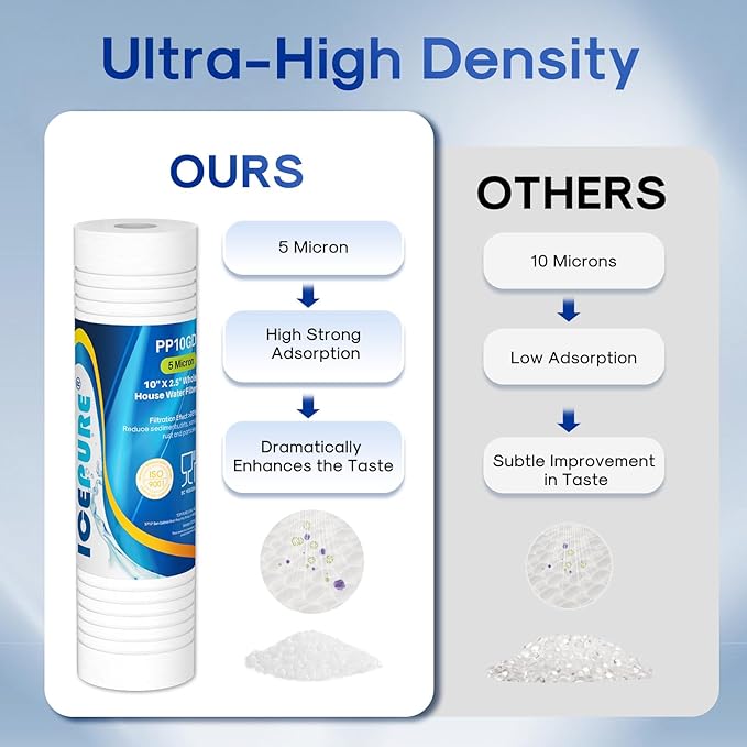 - High Quality - The 5 micron sediment grooved water filters are made of food-grade materials, BPA-free and lead-free. Each filter has undergone strict testing and meets international drinking water standards, ensuring the safety and purity of the filtered water. You can use them with confidence in your daily household water usage scenarios, providing high-quality water for you and your family.