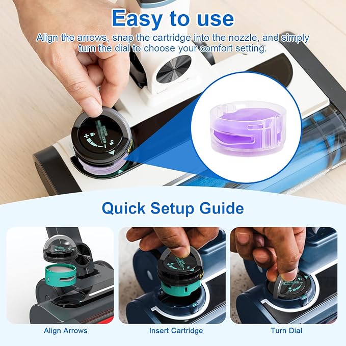 - 【Intuitive Installation】 The odor neutralizer cartridge made for Shark vacuum sits in the floor-nozzle dial. Lift the handle, align the arrows, remove the old unit, then insert the new replacement cartridge designed for Shark Stratos odor neutralizer and twist to lock. Rotate the dial to set intensity. Tool-free, quick, and clean—ideal for anyone upgrading to a vacuum odor neutralizer cartridge compatible with Shark without hassle.