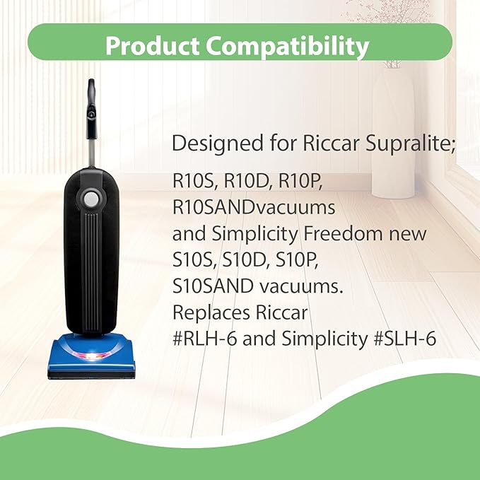 - Compatible Models: Designed to fit Riccar Supralite R10S, R10D, R10P, R10SAND vacuum cleaners and Simplicity Freedom New Models S10S, S10D, S10P, S10SAND vacuum cleaners. Replaces Riccar #RLH-6 and Simplicity #SLH-6. (!!!Please check your model carefully).