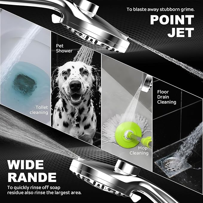 - 10-Setting High Pressure Handheld Sprayer (Clean & Versatile) Unleash versatility with the handheld shower head! Choose from 10 powerful spray settings, including 2 turbo jets perfect for rinsing pets, cleaning bathrooms, or powerful body massage. Tackle any task.