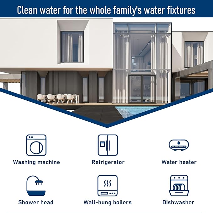 - Top Quality:The filter consists of a 1/4-inch plastic housing, 2 layers of pleated filter media, and an approximately 1-inch activated carbon inner solid core. The cartridge also includes a scale inhibitor media to help reduce hardness scale that can build up in water heaters, pipes, and water-using appliances.