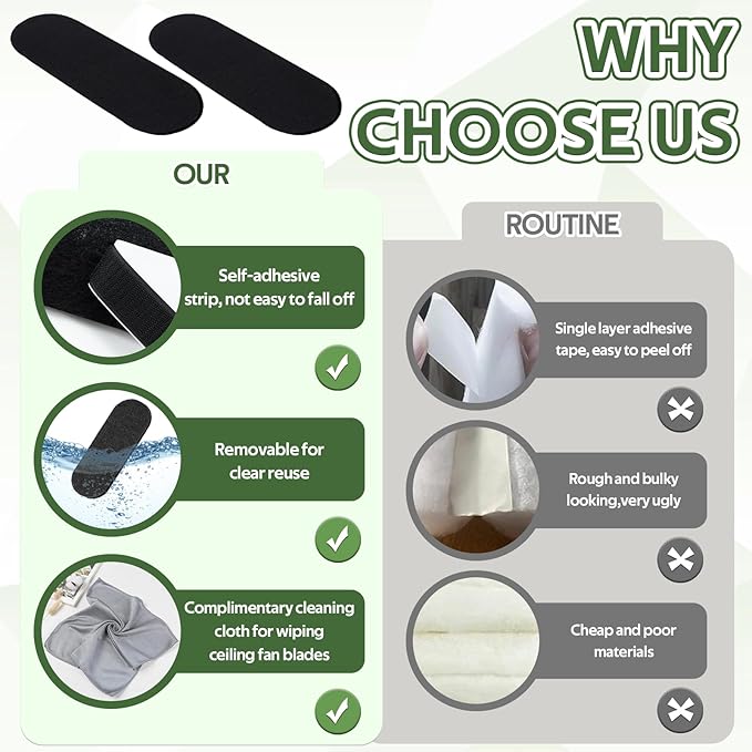 - Powerful Air Purification: Premium activated carbon ceiling fan filters for blades trap dust, pollen, pet dander, and smoke—no more breathing polluted air. Ideal for homes with pets or allergies