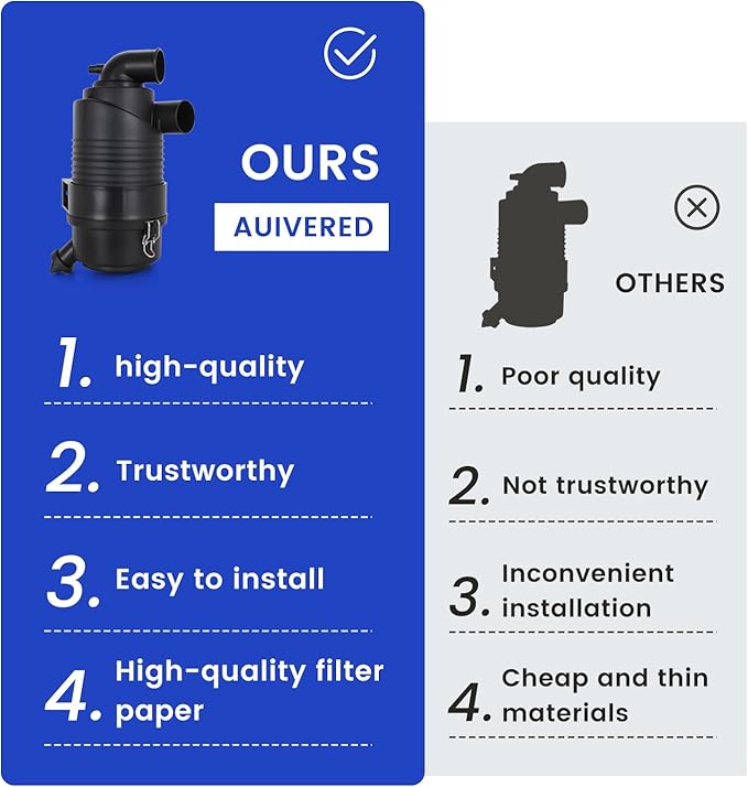- 【ENHANCED PROTECTION AND SEAL】- The integrated Air Filter Housing Cap not only shields the air filter from environmental pollutants but also ensures a secure and reliable seal. This design prevents unfiltered air from bypassing the filter, which is crucial for maintaining optimal engine performance and fuel efficiency.