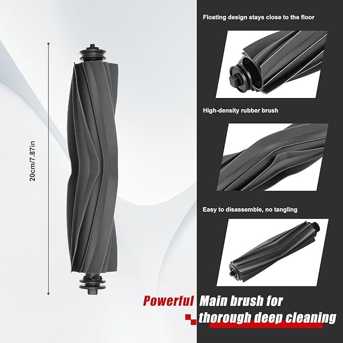 - Main Brush & Side Brush:The main brush effectively removes dust and stains from floors, while the uniquely designed side brush reaches every corner. Both brushes are made of high-quality rubber and are suitable for all types of flooring.