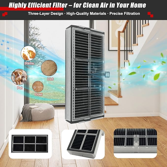 - Filter & Mop Pad & Dust Bag:The HEPA filter captures 99.97% of particles as small as 0.3 microns. The mop pad is highly absorbent, lint-free, and colorfast. It is reusable after washing and drying. The large-capacity dust bag can hold up to 30 bins worth of dirt and debris.
