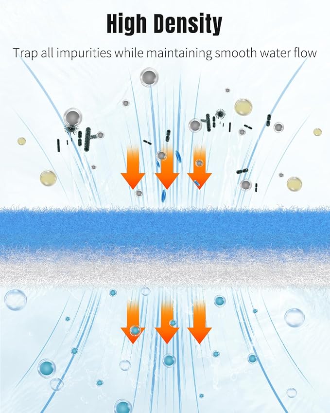 - High-Density Filter Floss: The large aquarium filter pad effectively traps debris, food residue, fish excrement, and floating matter while maintaining smooth water flow. Always provide efficient mechanical filtration to keep the tank water crystal clear