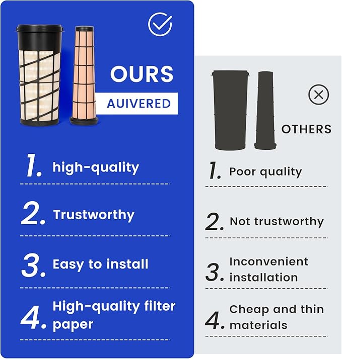 RE282286 RE282287 Inner & Outer Air Filter Kit - Fit for John Deere 318D 319D 320D 323D 5045D 5045E 5050E 5055E 5060E 5065E 5075E 5075EF 5055E