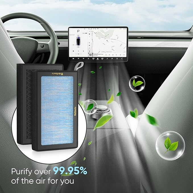 Tesla Model 3 Model Y Cabin Air Filter, 2 Pack H13 HEPA Filter with Premium Activated Carbon, 4-Stage Filtrtion Structure (2016-2025)