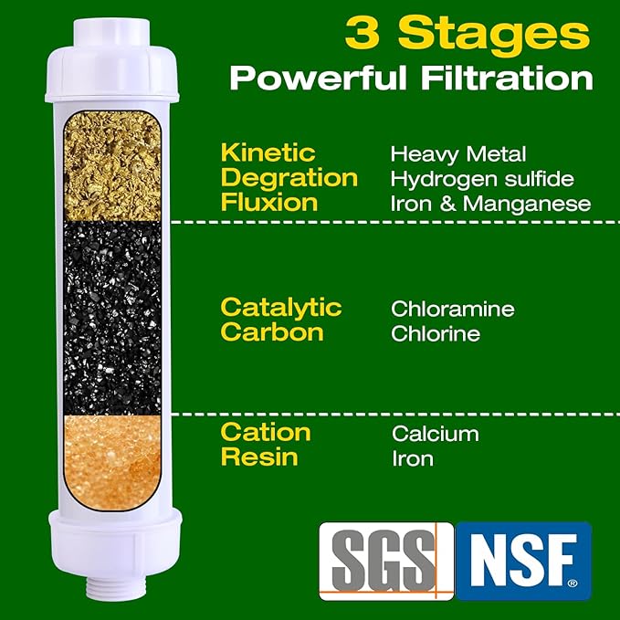 - Triple-Stage Filtration Power – Features KDF, catalytic carbon, and cation resin to effectively remove chlorine, chloramine, calcium and magnesium, providing clean and soft water ideal for plant growth.