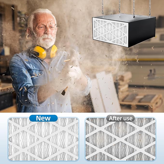 - Air Filtration System:Specifically designed for workshop air filtration system,Use melt-blown non-woven fabric filter can be used for particles of 5 microns or larger,For particles, dust and debris in the air thus keeping the air fresh for a long time