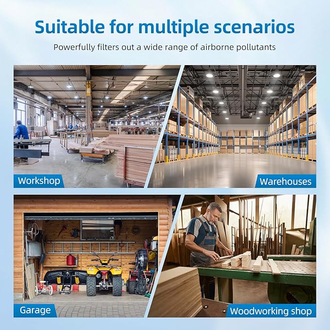 - Air Filtration System:Specifically designed for workshop air filtration system,Use melt-blown non-woven fabric filter can be used for particles of 5 microns or larger,For particles, dust and debris in the air thus keeping the air fresh for a long time