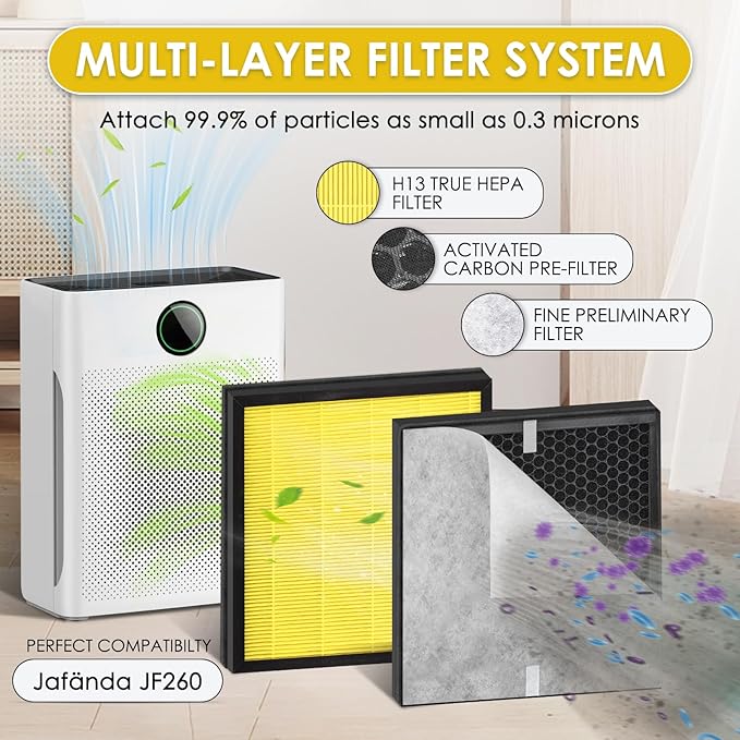- Material : 1. Washable Pre-filter; 2. H13 grade true HEPA filter; 3. Activated carbon filter