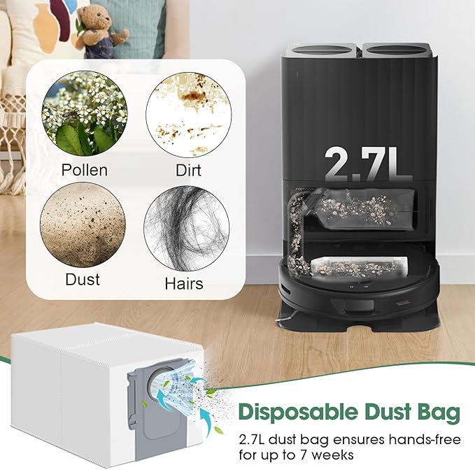 - 【Washable & Reusable Material】: Upgraded HEPA Filters trap 99.97% of dust and particles, washable for long-term uses. Microfiber mop pads absorb spills instantly and rinse clean under water. Large-capacity dust bag can hold up to 7 weeks of dust, dirt, hair and pollen, capturing 99.7% small particles from floating up into the air.