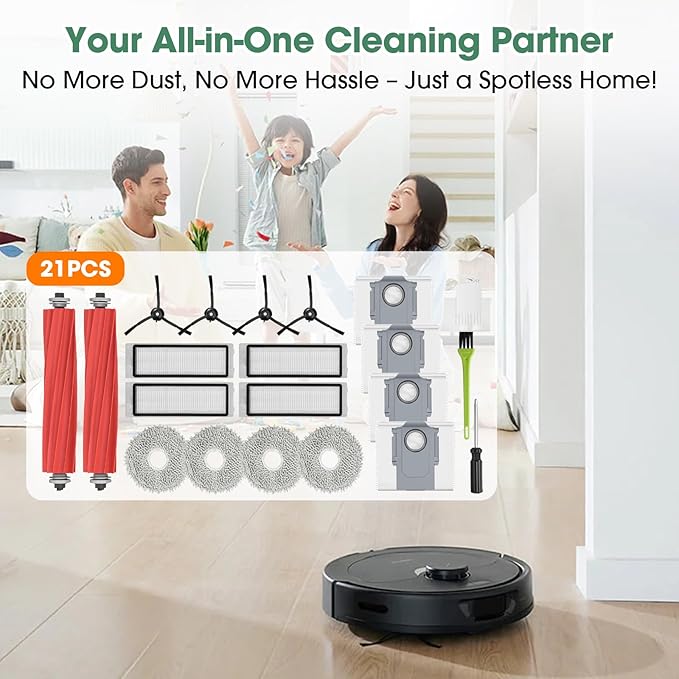 - 【Package Content】: Our Q Revo replacement kit includes 2 main brushes, 4 HEPA filters, 4 dust bags, 4 washable mop pads, 4 side brushes, 2 cleaning brushes, and 1 screwdriver - everything you need for daily maintenance and deep cleaning