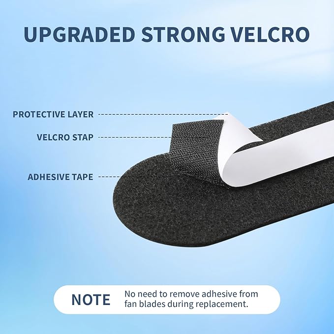 - 【Easy to Use】: The self-adhesive design of the ceiling fan blade filter is easy to peel and stick, you can simply peel off the adhesive backing, stick it to the ceiling fan blade and replace the filter every 1-2 months depending on the air quality.