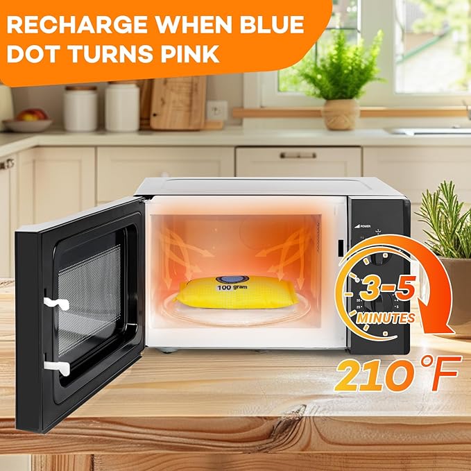 - Rechargeable & Recyclable: It can be charged using a microwave and heated at a temperature not exceeding 210 β (100 β). After the indicator light changes from light pink to blue, it can be reused.We recommend that the product be replaced after 10 times of use to ensure better water absorption.