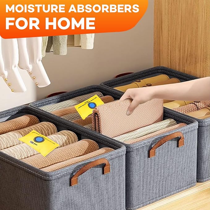 100g (12 Packs) Rechargeable Desiccant Packs for Storage, Color Indicating Silica Gel Desiccant Packets, Moisture absorbers for storage,Dehumidifier bag for Closets,Cars,Storage Bins