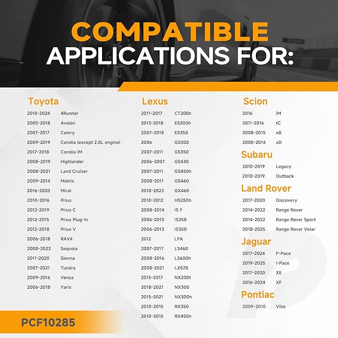 - [Compatible with Toyota & Scion]: Exact fit for 2007-2017 Camry, 2009-2019 Corolla, 2006-2018 RAV4, 2008-2019 Highlander, 2007-2021 Tundra, 2010-2024 4Runner, 2011-2020 Sienna, 2010-2016 Prius, 2007-2018 Yaris, 2005-2018 Avalon, 2009-2015 Venza, 2012-2019 Prius C, 2008-2022 Sequoia, 2008-2015 xB, 2012-2017 Prius V, 2009-2013 Matrix, 2011-2016 tC, 2008-2014 xD. Check "AmazonConfirmedFit" for 100% fitment guarantee.