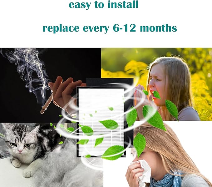 - Complete 6-Piece Set for Long-Term Use – Includes 2 HEPA Filters + 4 Activated Carbon Pre-Filters which together deliver extended protection and fresh air, making it ideal for homes, offices and pet areas.